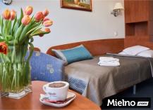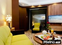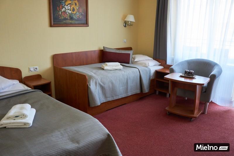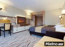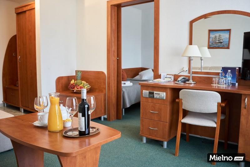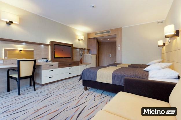 Do dyspozycji naszych gości oddajemy 300 miejsc noclegowych w tym 113 komfortowych pokoi w standardzie *** oraz 49 ekskluzywnych pokoi w standardzie **** . Pokoje są przytulne i wygodnie urządzone, toną w ciepłym świetle a ich duże okna dają wrażenie przestrzeni i zachęcają do relaksu. Budynek jest w pełni klimatyzowany a każdy pokój ma komfortową łazienkę. Goście mogą korzystać z telewizorów, prywatnych sejfów i dostępu do internetu. Wszystkie pokoje posiadają balkony z meblami do wypoczynku oraz sprzęt plażowy.Dodatkowym atutem jest wyśmienita kuchnia hotelu w formie bufetu szwedzkiego, na którym goszczą tradycyjne polskie potrawy i własne wypieki. Cały obiekt przystosowany jest do potrzeb osób niepełnosprawnych